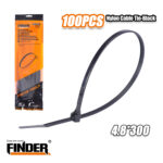 Σετ 100 τεμάχια δεματικά – Tie wraps, μεγέθους 4.8*300mm – Finder.