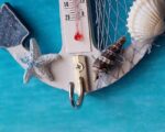 Χειροποίητο, διακοσμητικό Souvenir, επιτοίχιο με μεταλλική κρεμάστρα ρούχων και θερμόμετρο.