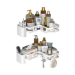Σετ επιτοίχια ράφια οργάνωσης μπάνιου, με 2 γωνιακά ράφια, 2 θήκες σαπουνιού/σφουγγαριού και 1 κρεμάστρα.