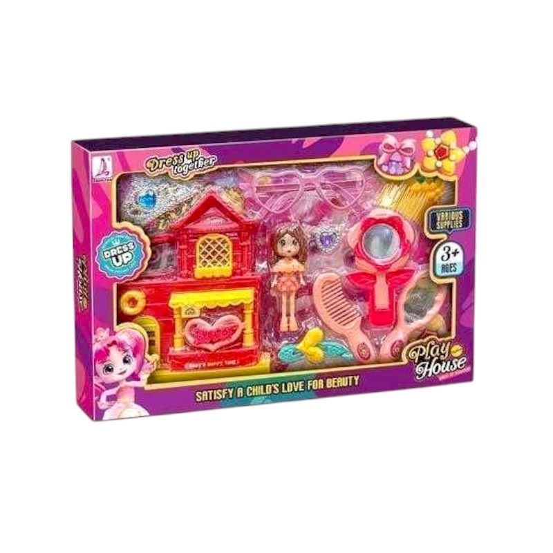 Σετ κούκλα με κουκλόσπιτο mini & αξεσουάρ ομορφιάς – 633-12 – 215301 6920250215301