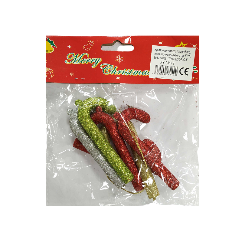 Σετ Χριστουγεννιάτικα στολίδια – Γλειφιτζόυρι μπαστουνάκι – 9cm – 6pcs – 231420 – GoodFlix