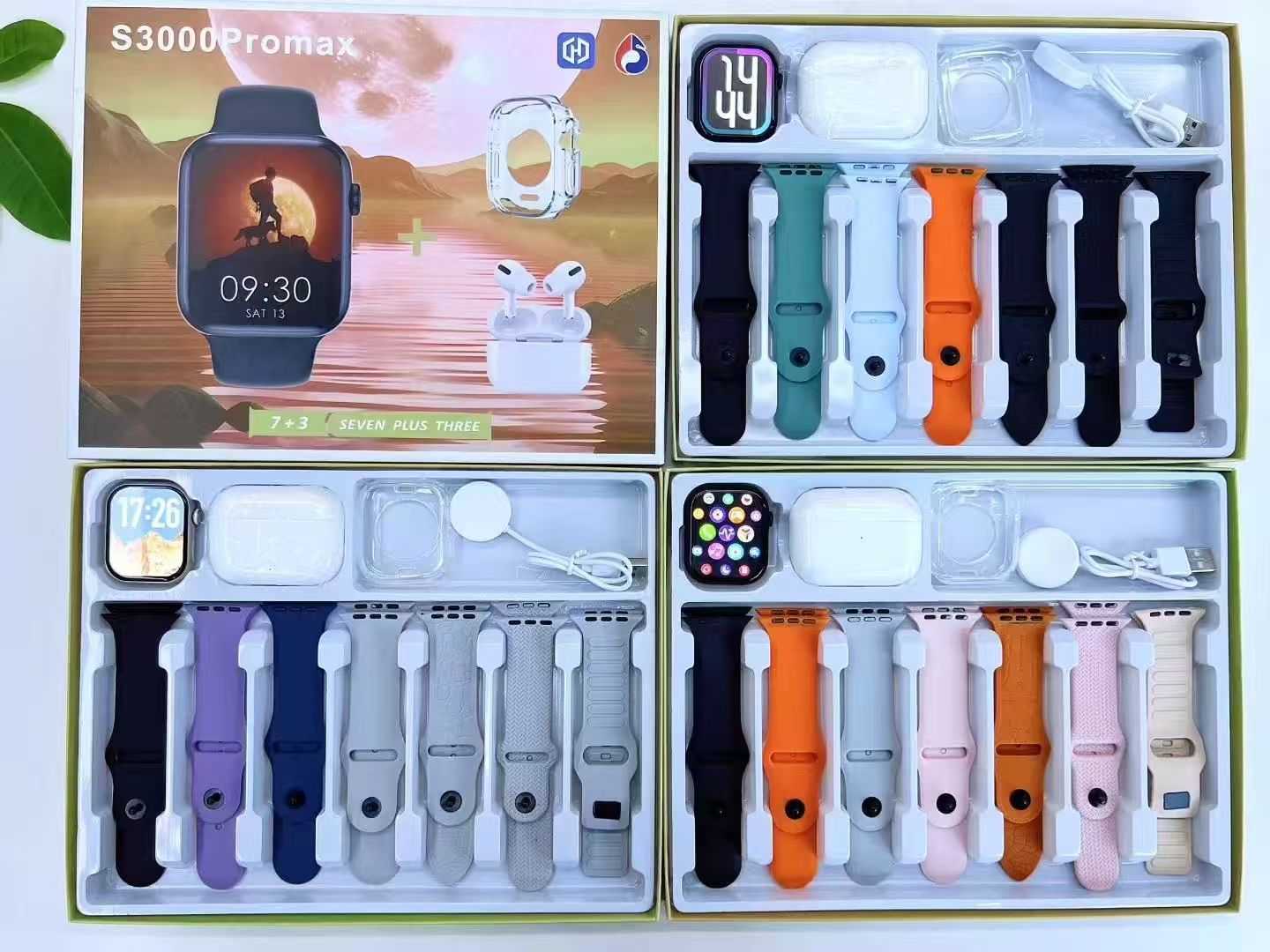 Σετ Smartwatch με ασύρματα ακουστικά Bluetooth & 7 λουράκια – S3000 Pro Max – 814093 – Grey – GoodFlix