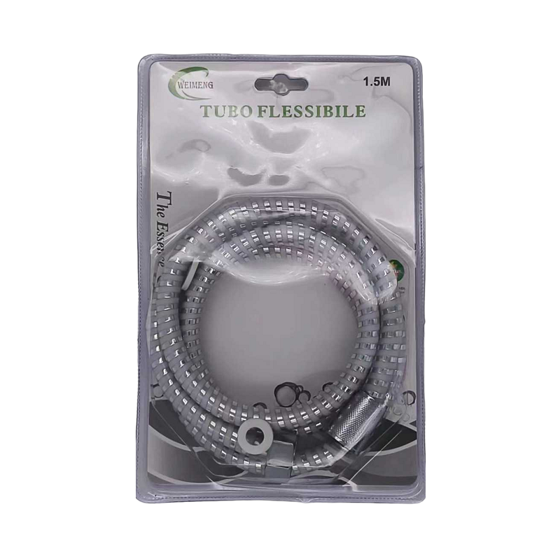 Σπιράλ σωλήνας ντουζιέρας, μήκους 1.5m, από ελαστικό πλαστικό υλικό, με επιχρωμιωμένους συνδέσμους.
