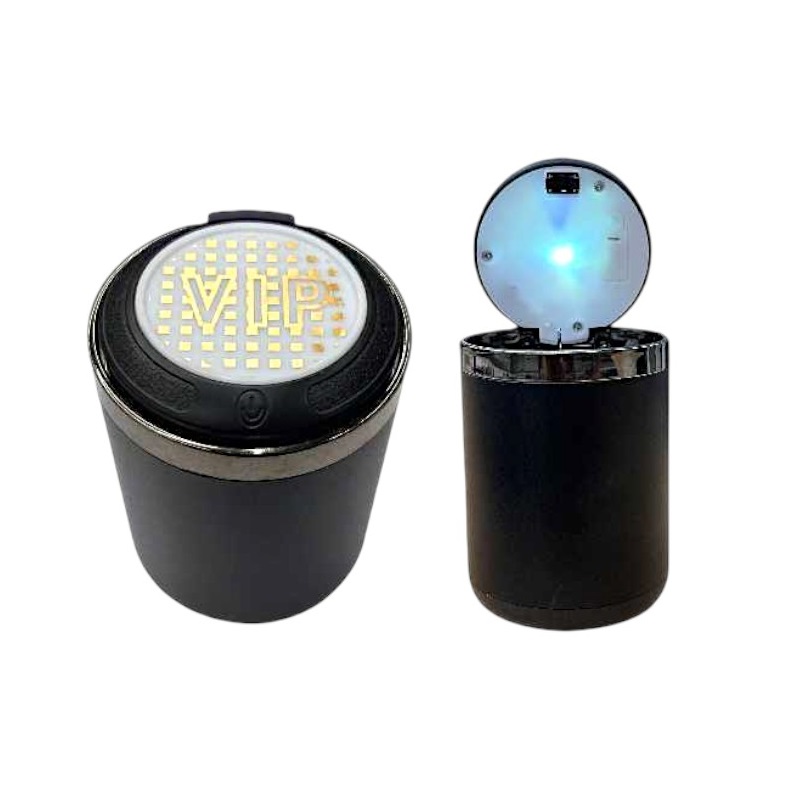 Σταχτοδοχείο αυτοκινήτου με εσωτερικό φωτισμό LED που ενεργοποιείται με το άνοιγμα και ειδικό κλιπ στήριξης τσιγάρου.