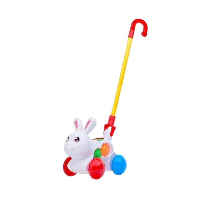 Συρόμενο παιχνίδι Λαγουδάκι με γρανάζια που στριφογυρίζουν και κουδουνάκια, με υπέροχο πολύχρωμο σχεδιασμό και εργονομική λαβή για ατελείωτες βόλτες παντού!