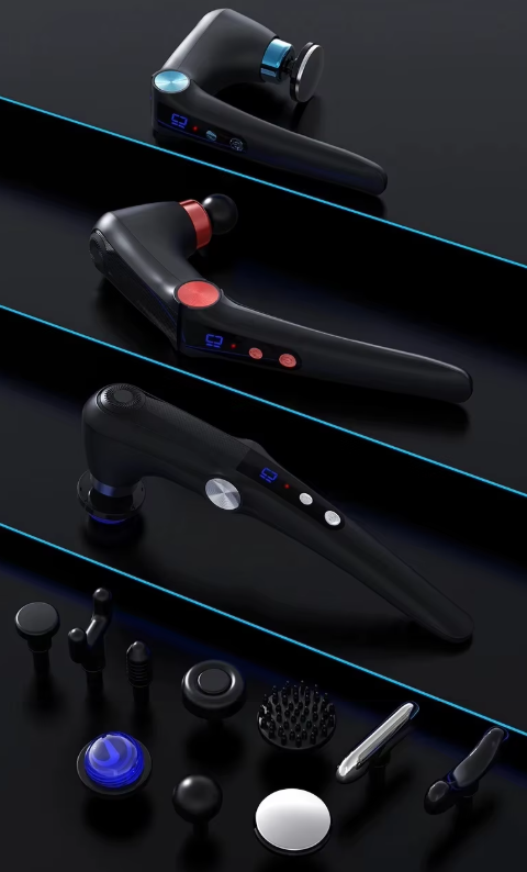 Επαναστατική συσκευή μασάζ και μυοχαλάρωσης Fascial Gun με υπέρυθρη θερμότητα, με ειδική εργονομική λαβή πλάτης και 10 εναλλάξιμες κεφαλές για εφαρμογή σε όλα τα σημεία του σώματος που επιθυμείτε.