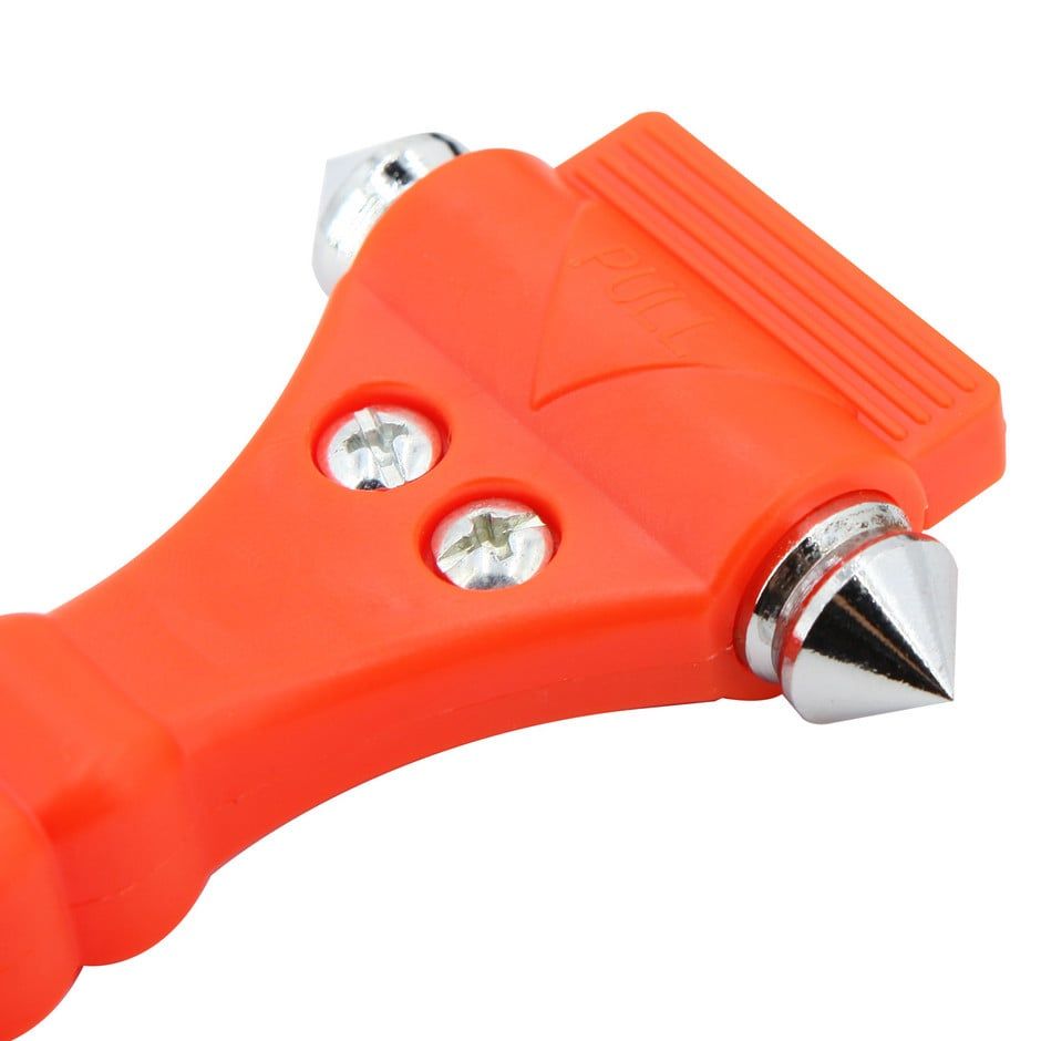 Σφυρί θραύσης κρυστάλλων αυτοκινήτου για περιπτώσεις έκτακτης ανάγκης και κόφτη ζώνης και εργονομική θήκη αποθήκευσης.