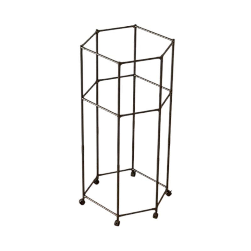 Τροχήλατη κρεμάστρα δαπέδου εξάγωνη, με μεταλλικό σκελετό και πρακτικό σχεδιασμό με ρόδες για εύκολη μετακίνηση και περιστροφή, ιδανική ως έπιπλο εισόδου ή για την οργάνωση των ρούχων στο δωμάτιό σας.