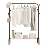 Τροχήλατη κρεμάστρα δαπέδου μονή, μεταλλική, με ράφι παπουτσιών και πλαϊνές κρεμάστρες, ιδανική ως έπιπλο εισόδου ή για την οργάνωση των ρούχων στο δωμάτιό σας.