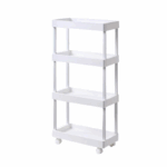 Τροχήλατη ραφιέρα πλαστική 4 επιπέδων με πρακτικό σχεδιασμό, ιδανική για την κουζίνα ή το μπάνιο σας.
