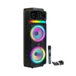 Φορητό ηχείο subwoofer με διπλό ηχείο και εξαιρετικής ποιότητας ήχο, με εντυπωσιακό φωτισμό LED που προσαρμόζεται στο ρυθμό της μουσικής και πρακτικό σχεδιασμό μεταφοράς.