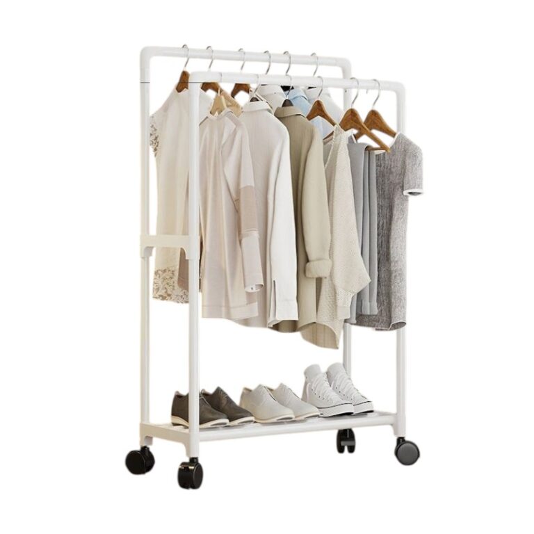 Τροχήλατη κρεμάστρα δαπέδου με ράφι παπουτσιών – YX9108-1 – 522770 – White – GoodFlix